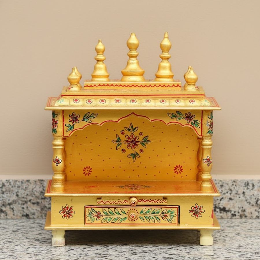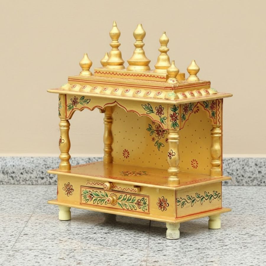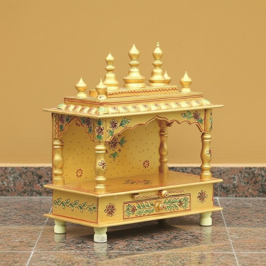 Compact, pre-assembled pooja ghar ideal for flats, study tables and living room corners.