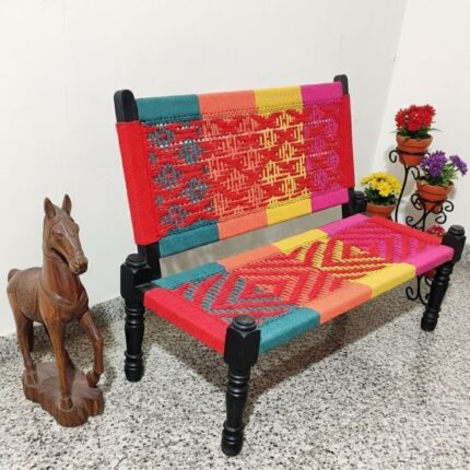 Furnshine – Walton Solid Wood Handwoven Backrest Bench (Multicolor)